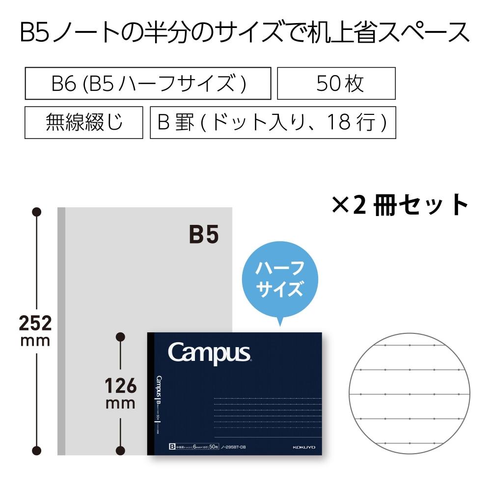 KOKUYO Заметки для взрослых, кампус, половинный размер, точка B, линейка B6, деформация, темно-синий, 50 листов, набор из 2 книг, № 295BT-DBX2SET