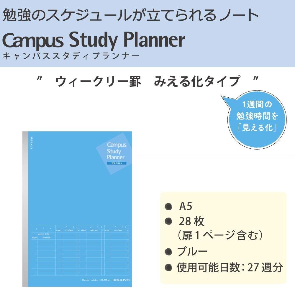 KOKUYO Тетрадь для кампуса, еженедельный планировщик занятий, в линейку, формат А5, синий, No-Y82MW-B