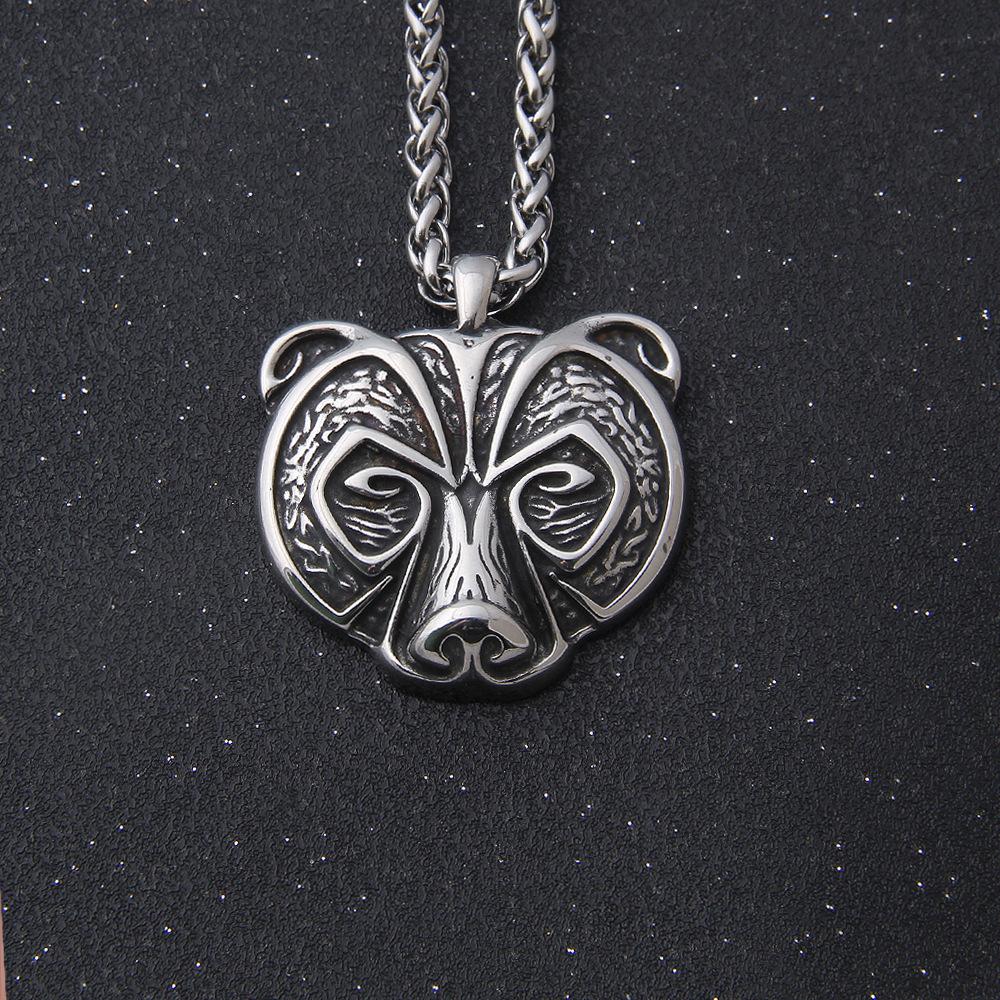 Ожерелье с подвеской в виде головы медведя викингов-берсерков из нержавеющей стали для мужчин и женщин