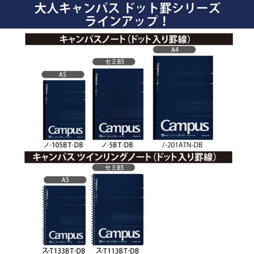KOKUYO Note Campus Note Adult Campus Dotted A-lined A4 40 Sheets No-201AT-DB Navy Blue Body Size: W210xH297xD5mm258g