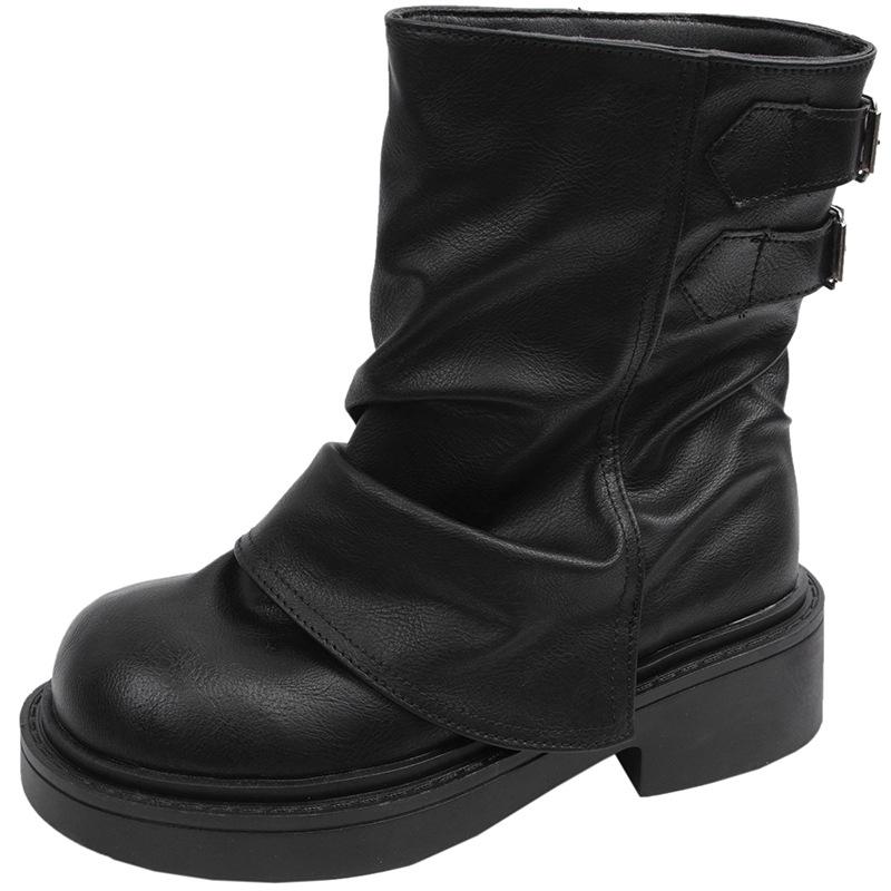Платформа Женские сапоги в стиле вестерн ковбойские модные короткие сапоги без застежек осень-зима толстый каблук женская обувь