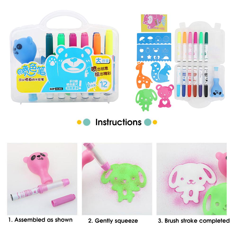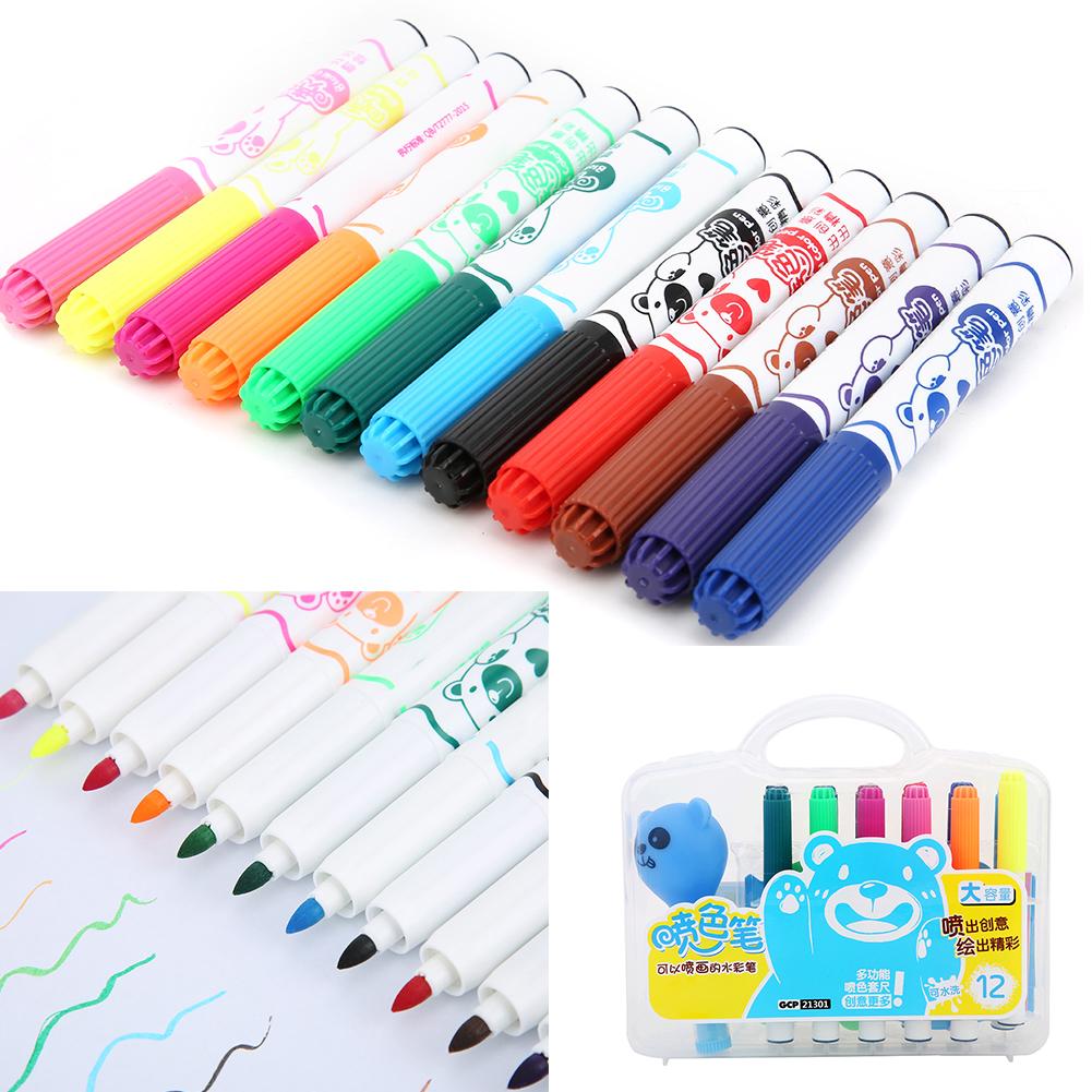 Ручка-спрей для краски, моющаяся, 12 цветов, детские инструменты для рисования акварелью, художественные принадлежности