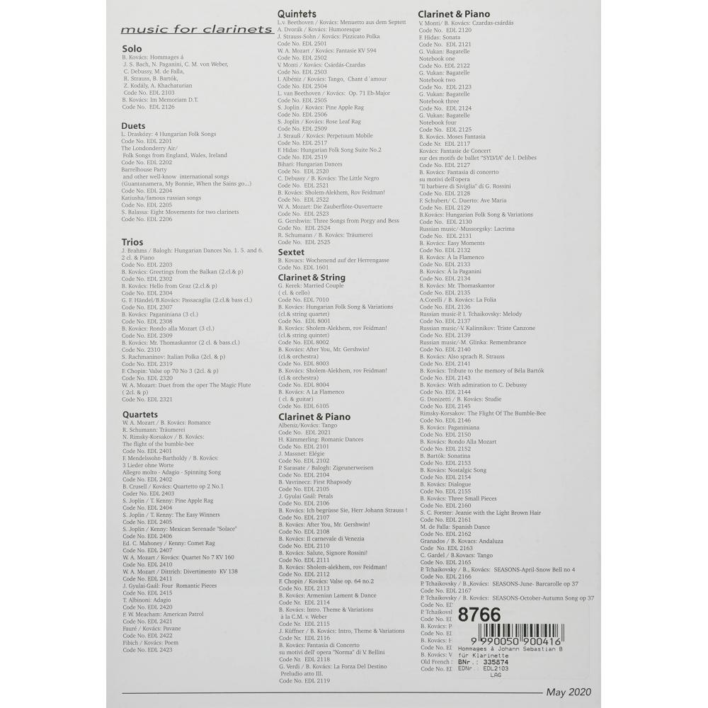 Виттнер Бела Коваче: Посвящение Баху, Паганини, Веберу, Дебюсси, Фалье, Р.. Штраус, Барток, Кодай, Хачатрян (кларнет соло) Издательство Даррох