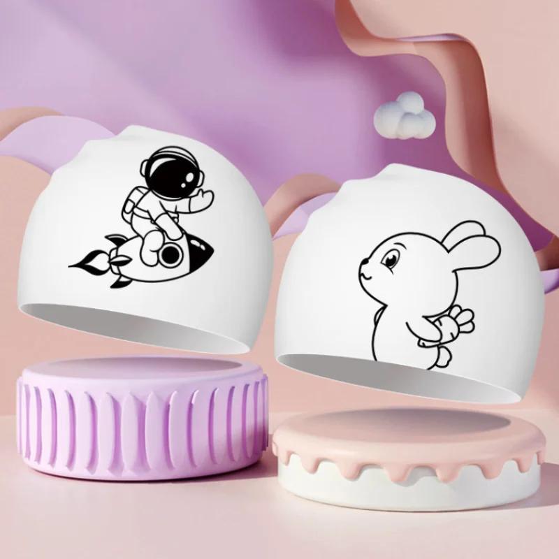 Шапочки для плавания с героями мультфильмов, большие размеры, длинные волосы, защита ушей, силиконовые шапочки для плавания для детей, печатные шапочки для плавания, аксессуары для бассейна
