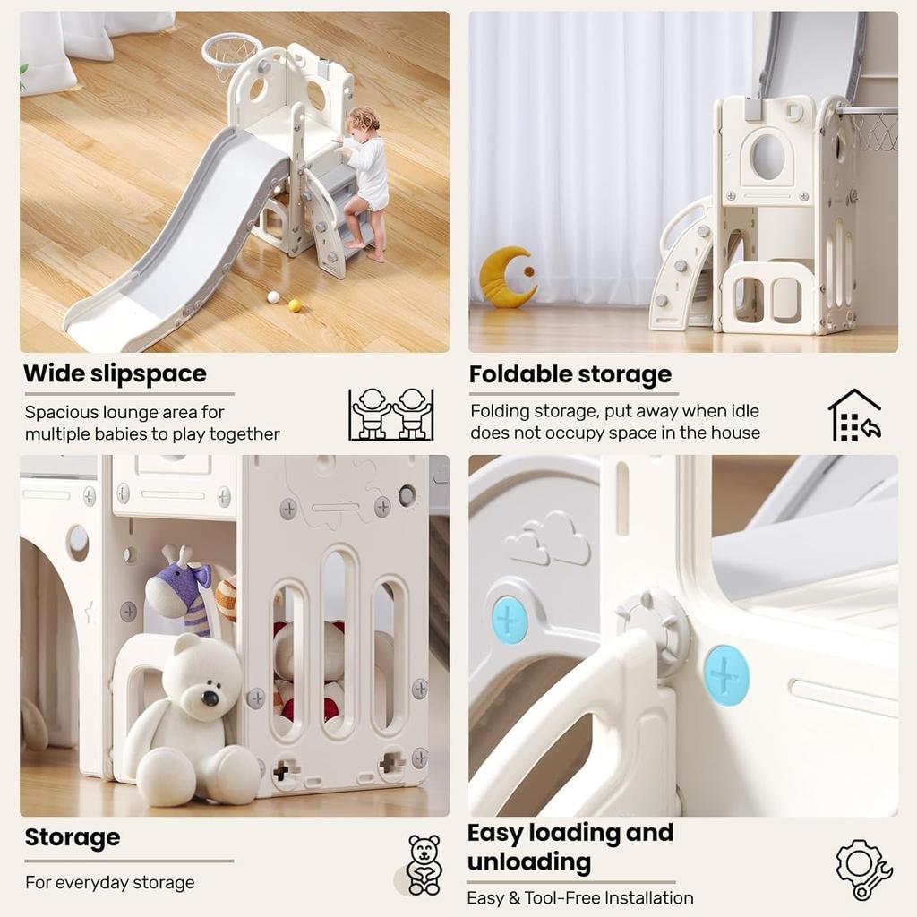 Ubravoo Детская горка, удлиненная детская горка с манежем, местом для хранения вещей и нескользящими ступеньками, игровое оборудование для помещений и улицы, отдельно стоящая горка