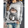 Толстовка с 3D-принтом Coffee Cat Женская мода Круглый вырез Повседневные толстовки с капюшоном Свитшоты с изображением животных и кошек Пальто для девочек Женские толстовки Женская одежда