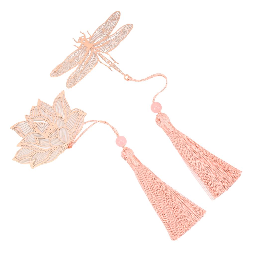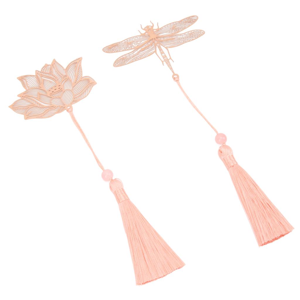 2 шт. Золотая полая закладка с элегантными кисточками Красивая закладка из нержавеющей стали с покрытием из металла