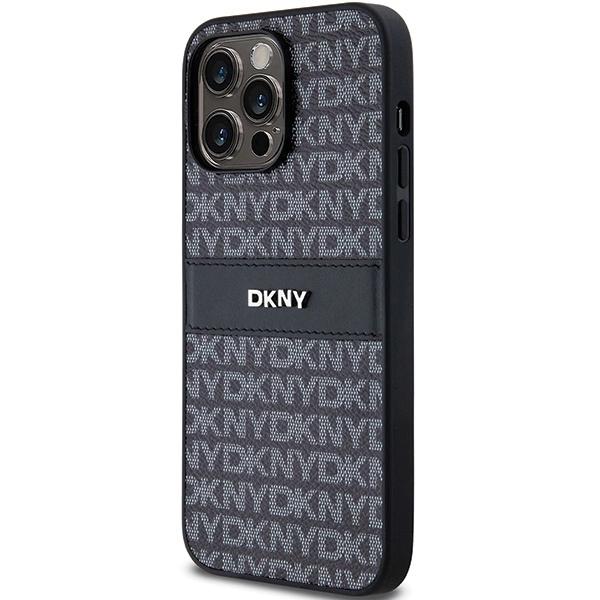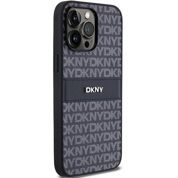 Dkny Leather Mono Stripe & Metal Logo Case For Iphone 14 Pro Max - Black