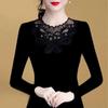Осенне-зимняя женская нижняя рубашка, черная кружевная футболка с длинными рукавами, внутренний топ больших размеров