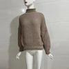 Осенне-зимний женский свитер, вязаный свитер, свитер из пряжи, закрученный подол, пуловер, высокий воротник, рукав «летучая мышь», однотонный топ