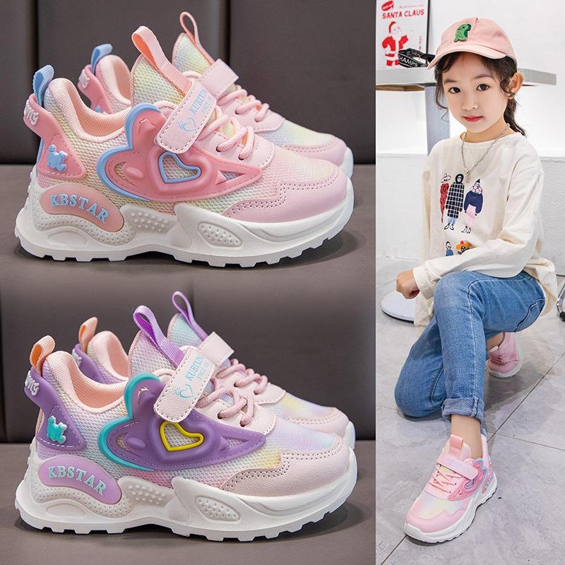 Спортивная обувь для девочек с двойной сеткой, весна и осень, новая удобная повседневная обувь для начальной школы, детская обувь, кроссовки с мягкой подошвой для детей