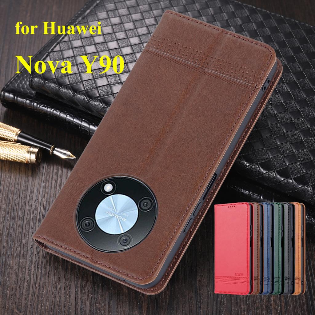 Роскошный магнитный адсорбционный кожаный чехол для Huawei Nova Y90 / Huawei Nova Y 90 Flip Cover Защитный чехол Fundas Coque