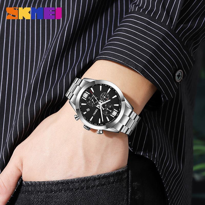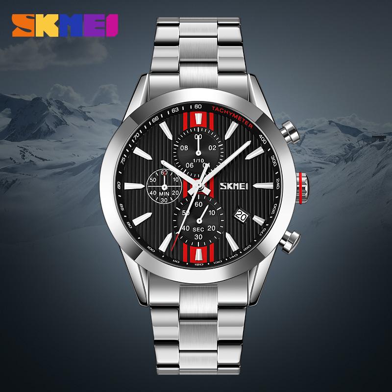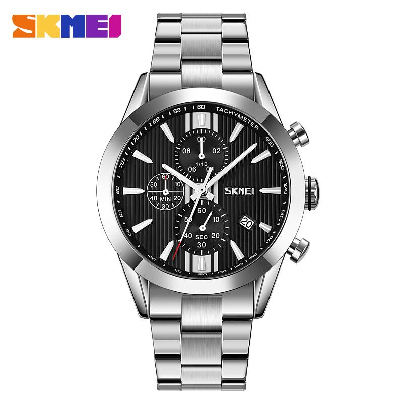 Moment beauty SKmei fashion real three-eye хронограф мужские часы один календарь многофункциональные стальной ремень кварцевые часы