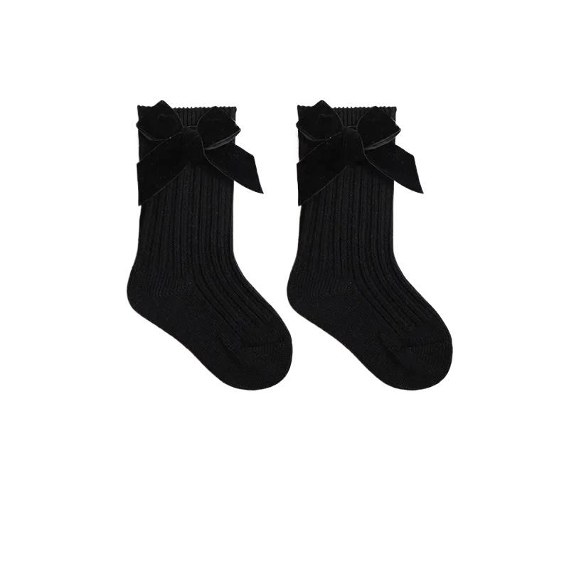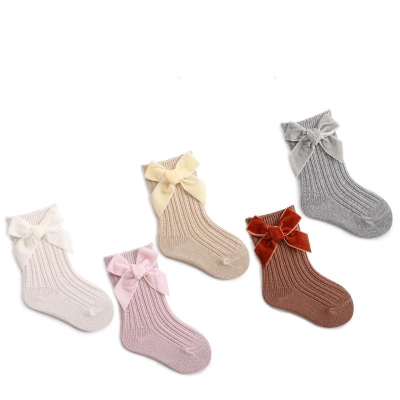 1 пара теплых осенних носков для девочек в стиле ретро, милые бархатные носки с бантом для теленка для малышей, мягкие хлопковые однотонные детские носки для девочек