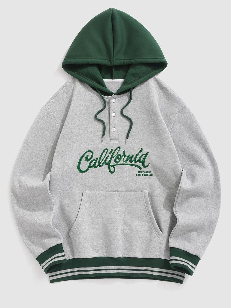 ZAFUL Толстовка с капюшоном и вышитыми буквами, карманом-кенгуру, на флисовой подкладке