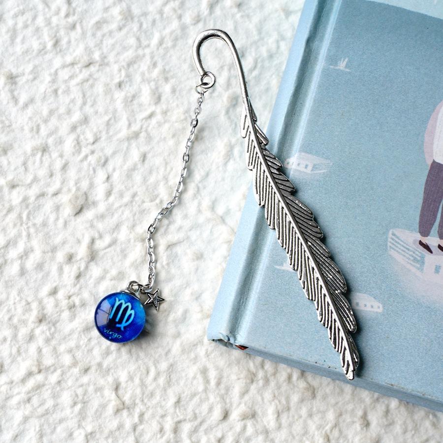 Креативная светящаяся закладка с подвеской в виде двенадцати созвездий, металлическая ретро-закладка с листиком и подарком