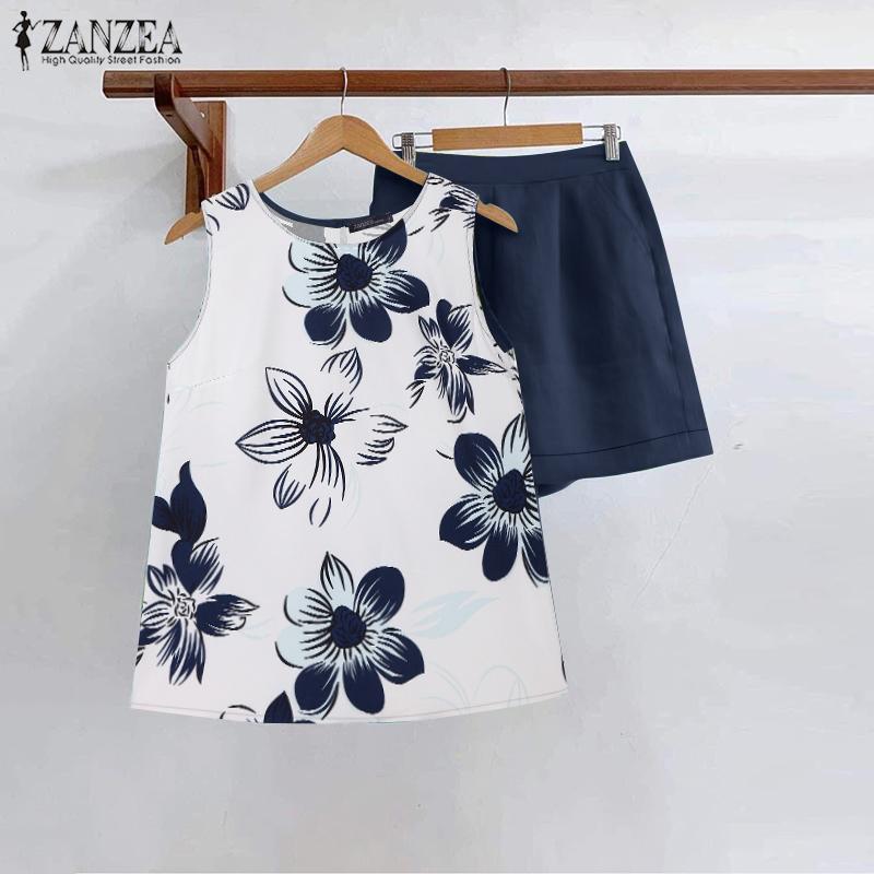 ZANZEA Женские принтованные майки и шорты, летние комплекты из двух частей — купить товар онлайн с бесплатной доставкой до всему миру!