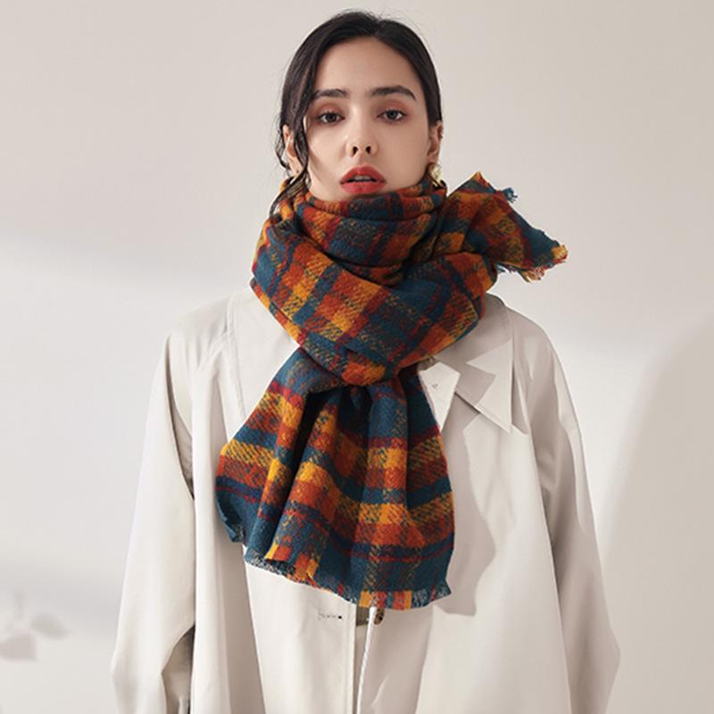5-цветная осень/зима 2024 года, новая модная теплая шаль, имитация кашемира, кисточка, утолщенное украшение на шею, классический клетчатый принт, длинный шарф