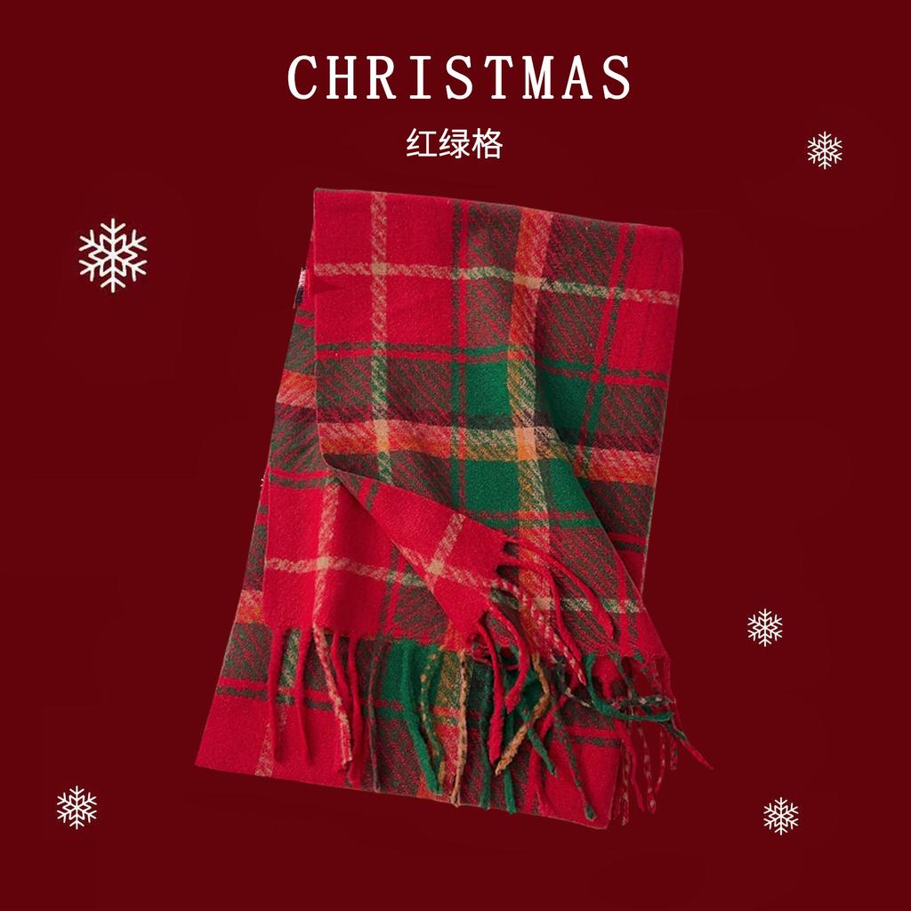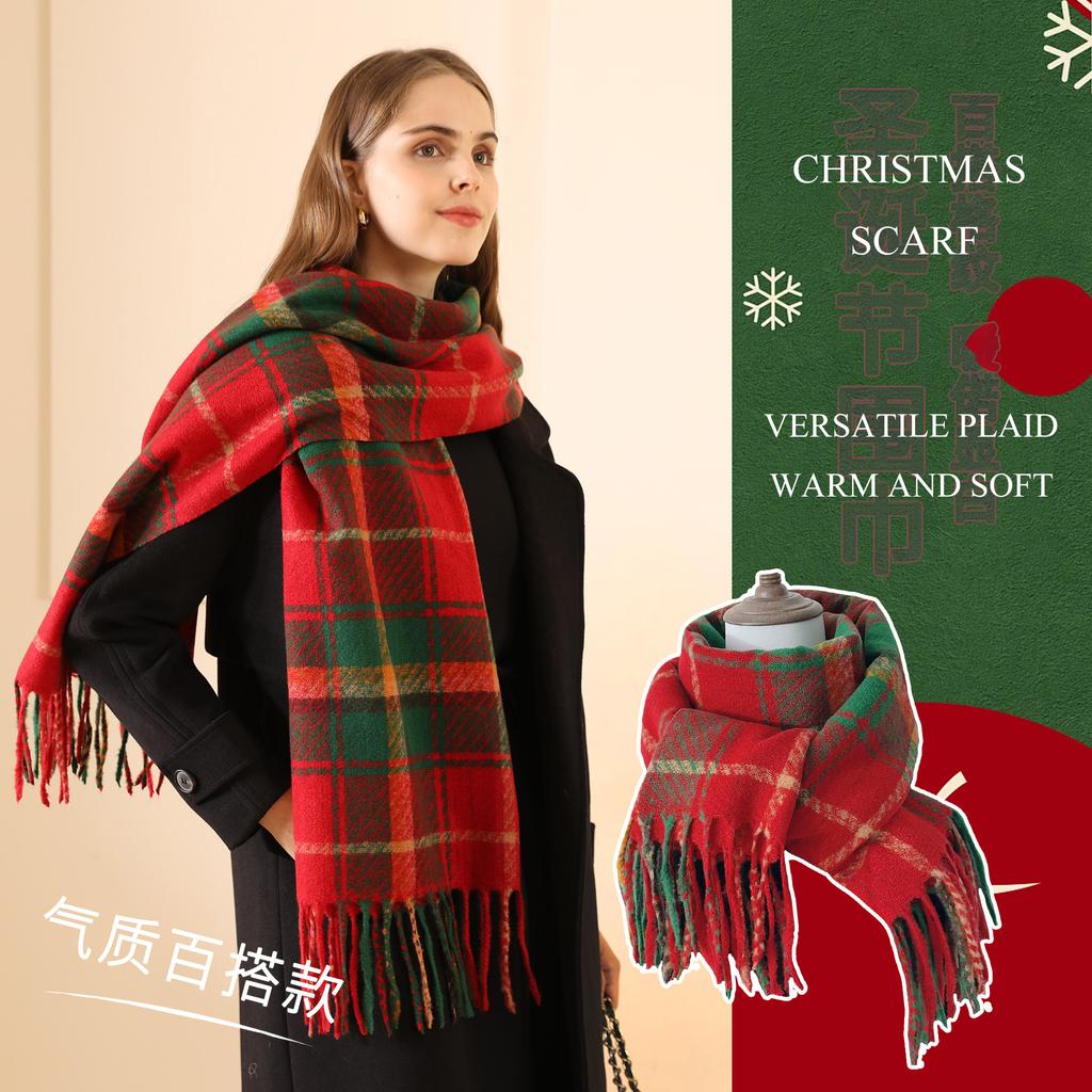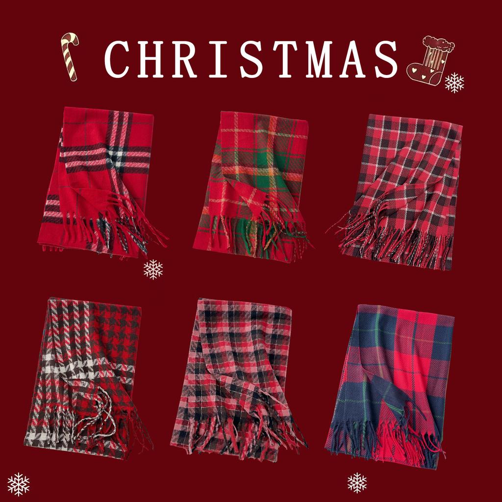 Новый осенне-зимний новогодний ретро-красный клетчатый шарф женский искусственный кашемир универсальный теплый рождественский шарф