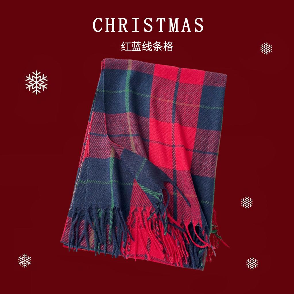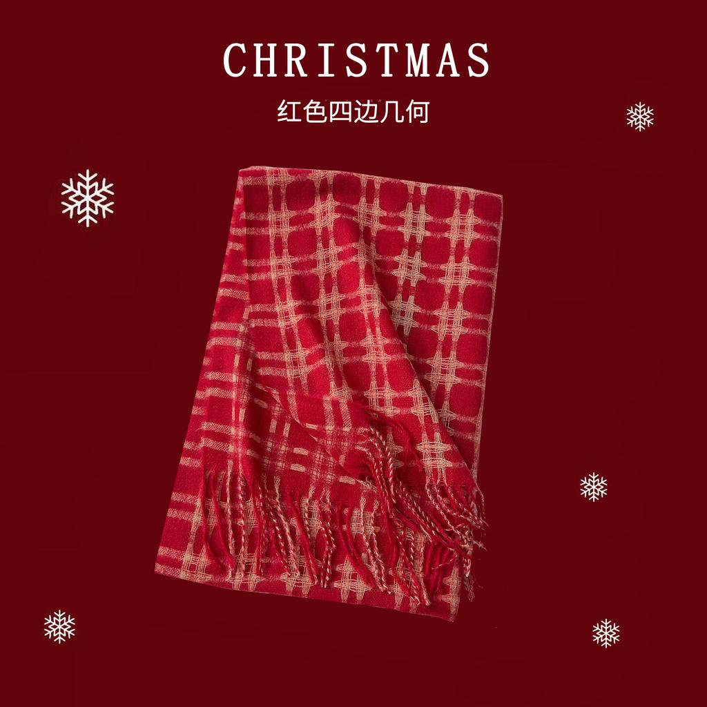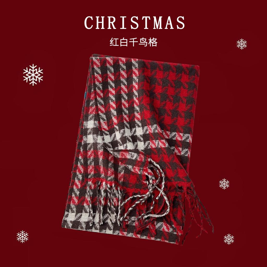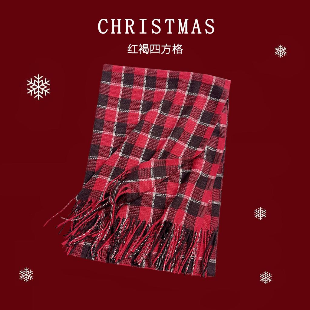 Новый осенне-зимний новогодний ретро-красный клетчатый шарф женский искусственный кашемир универсальный теплый рождественский шарф