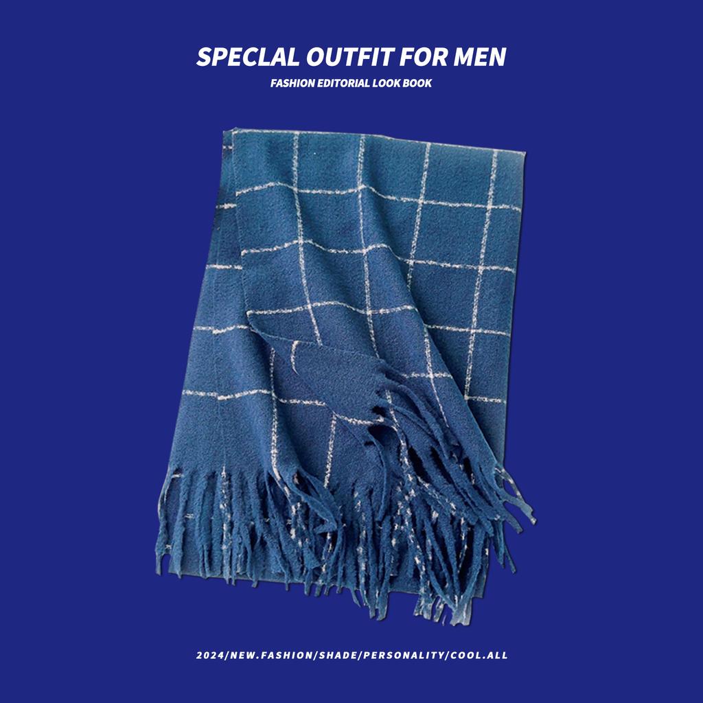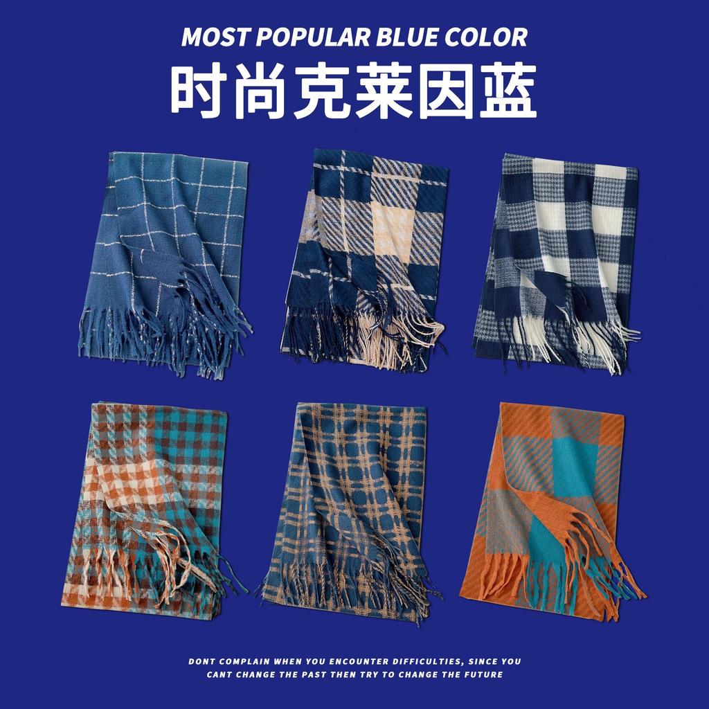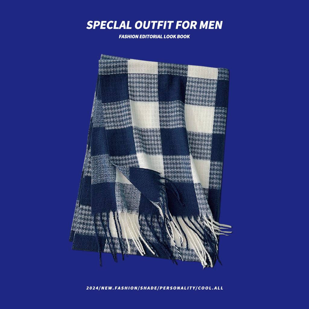 Осенне-зимний новый синий универсальный белый высококачественный клетчатый искусственный кашемировый толстый теплый шарф подходит для мужчин и женщин