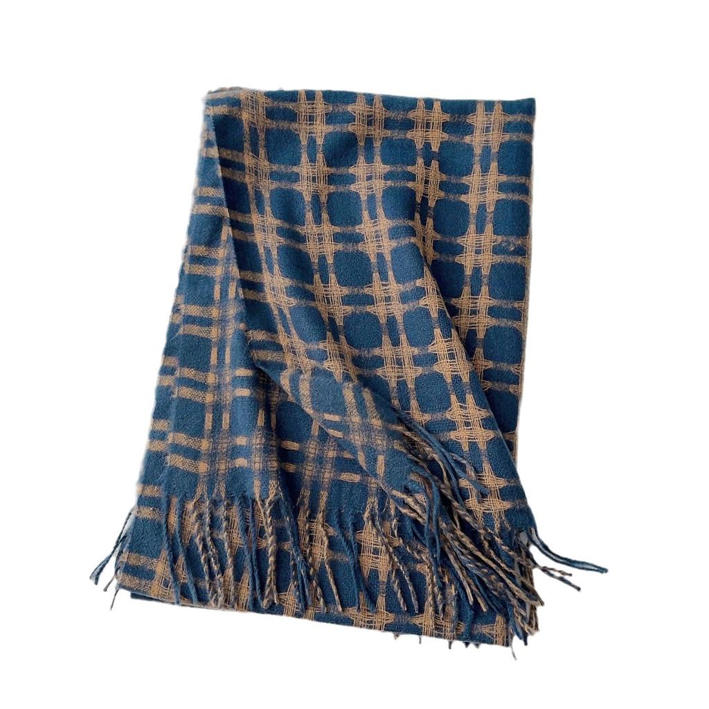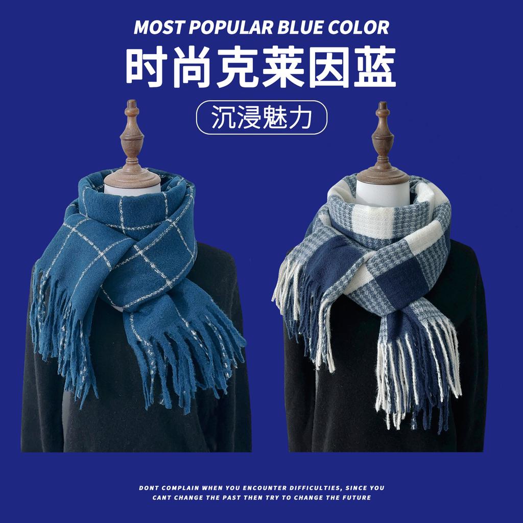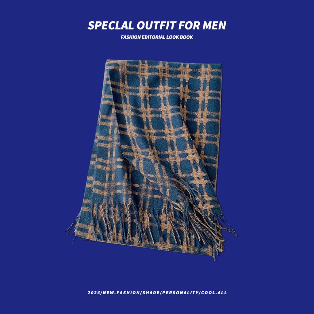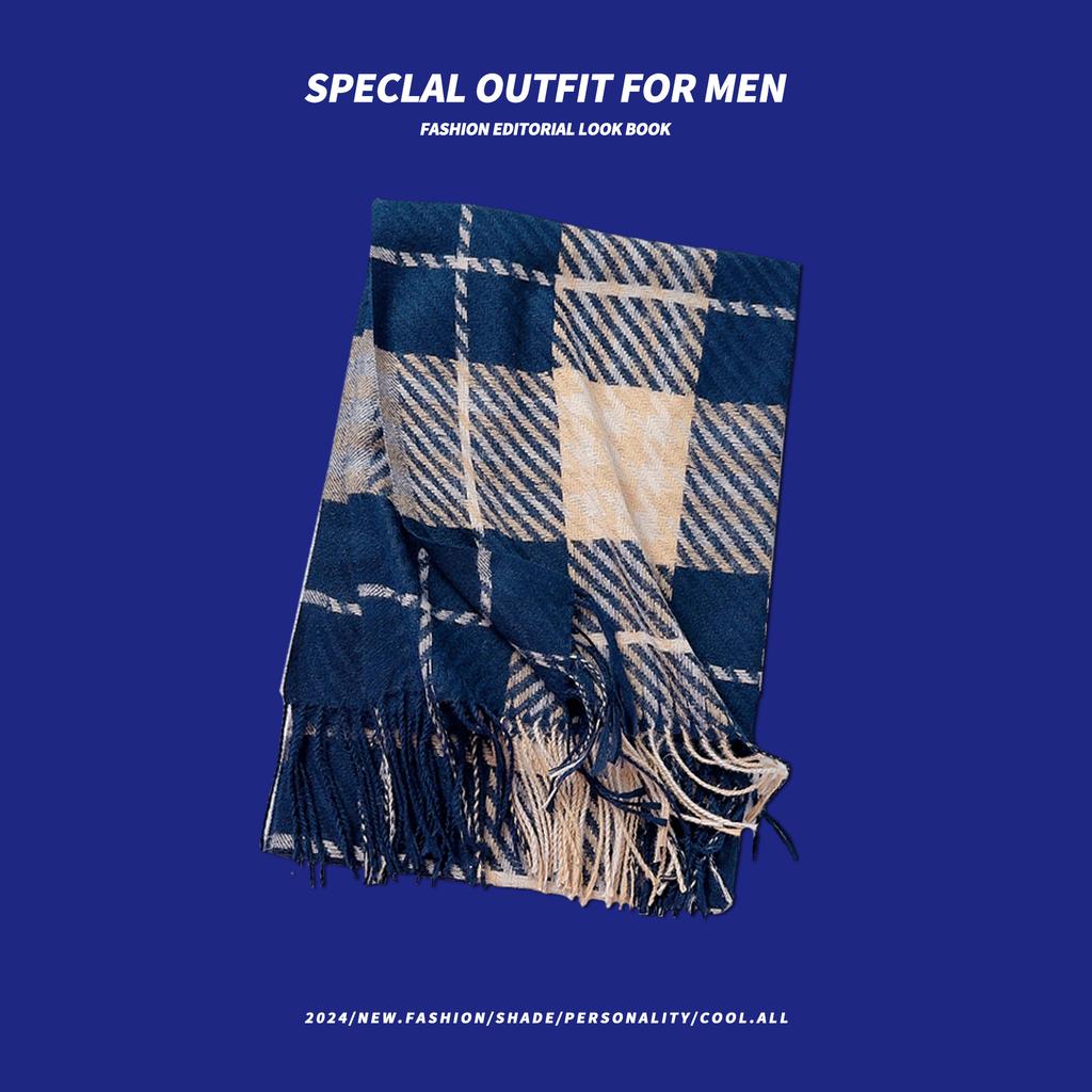 Осенне-зимний новый синий универсальный белый высококачественный клетчатый искусственный кашемировый толстый теплый шарф подходит для мужчин и женщин