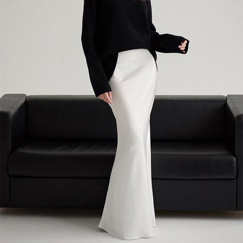 Длинная атласная юбка с высокой талией, женская летняя узкая модная элегантная юбка, женская повседневная лоскутная белая темпераментная уличная одежда для женщин 2024