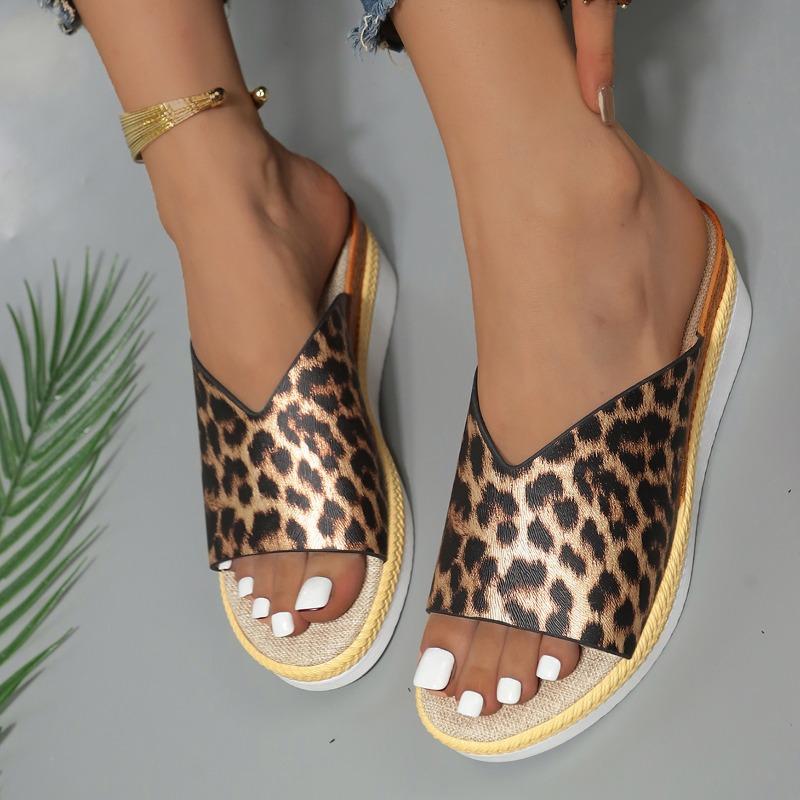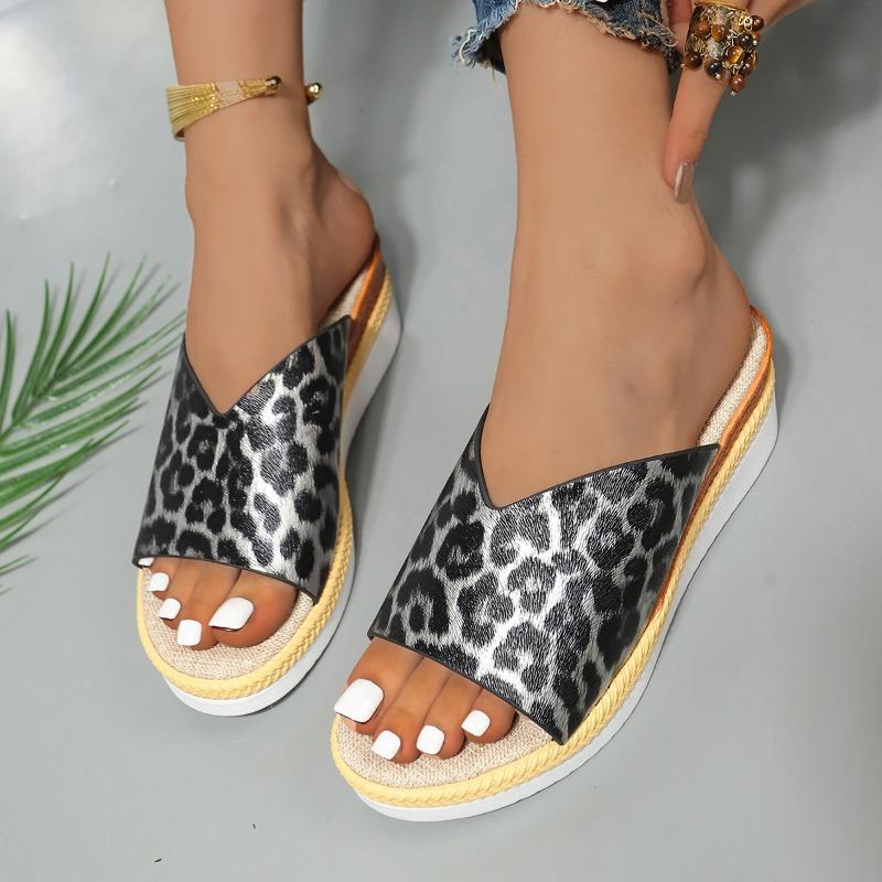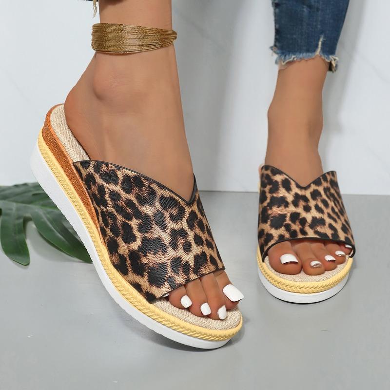 Леопардовые туфли на танкетке, женские босоножки на высоком каблуке, пляжное платье на платформе, шлепанцы, модные новинки 2024 года, туфли-лодочки, брендовые женские шлепанцы