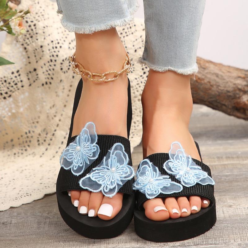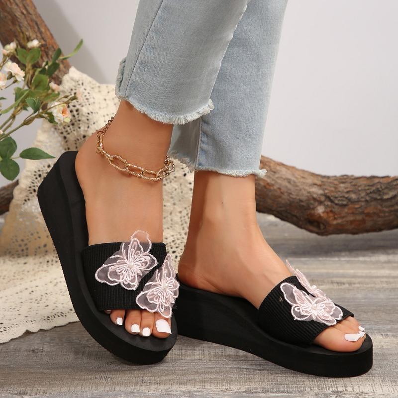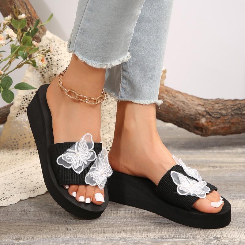 Новые тапочки на танкетке Butterfly, женская обувь 2024 года, летняя обувь с открытым носком для женщин, модные нескользящие женские сандалии, тапочки