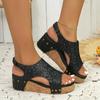 Новые Золотые Серебряные Блестящие Босоножки На Массивной Платформе Женские Летние Босоножки С Открытым Носком На Танкетке Женские Туфли В Ретро-стиле