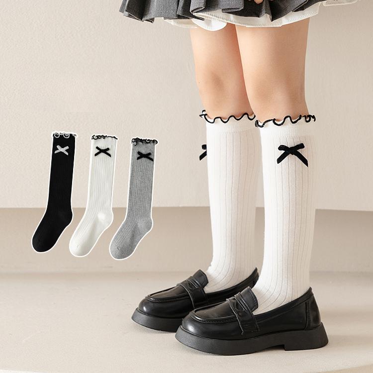 1 пара милых шикарных носков с бантом для детей, модные черные, белые, серые школьные носки, милые весенне-осенние носки с бантом