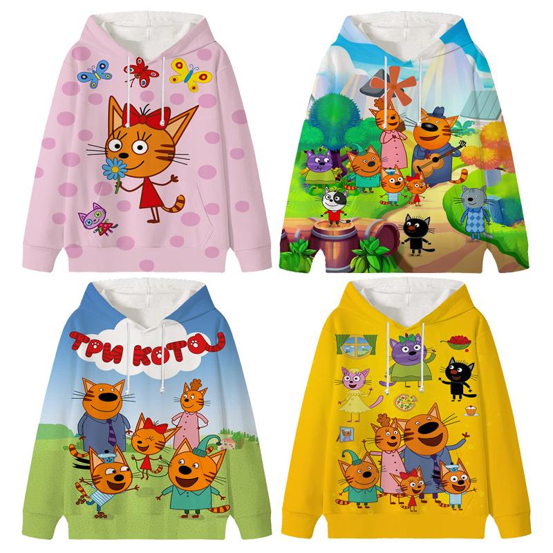 Толстовка с капюшоном Three Kittens E-cat Family для детей, милая детская осенняя толстовка с рисунком манги, детская одежда для девочек и мальчиков, толстовки с капюшоном