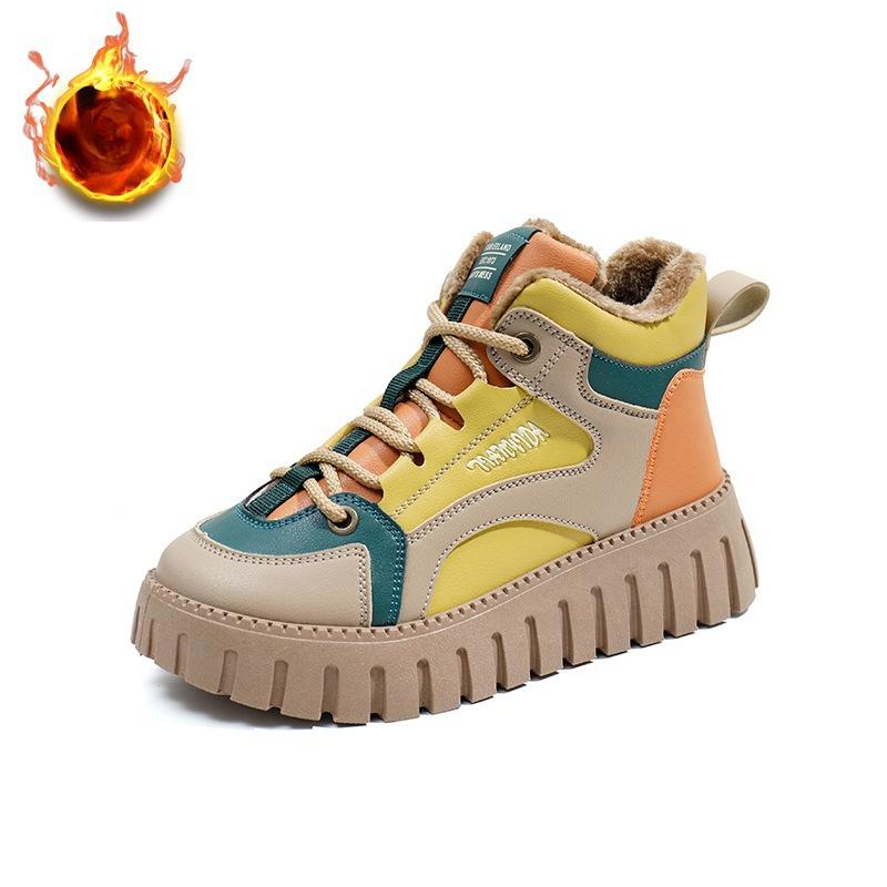 【Нескользящая резиновая подошва】: Резиновая подошва не скользит, обеспечивая устойчивую и безопасную ходьбу по различным поверхностям.. Рисунок протектора увеличивает площадь контакта между ботинками на платформе и землей, улучшая сцепление и устойчивость.