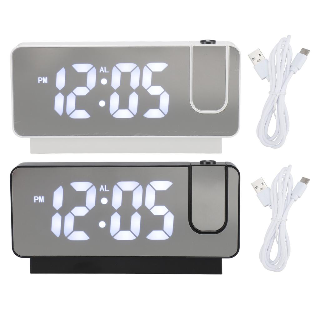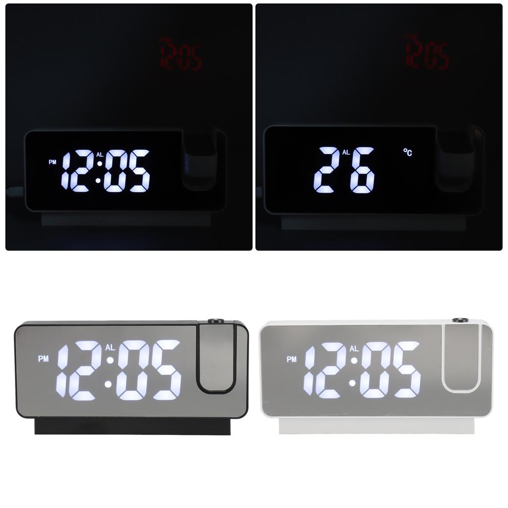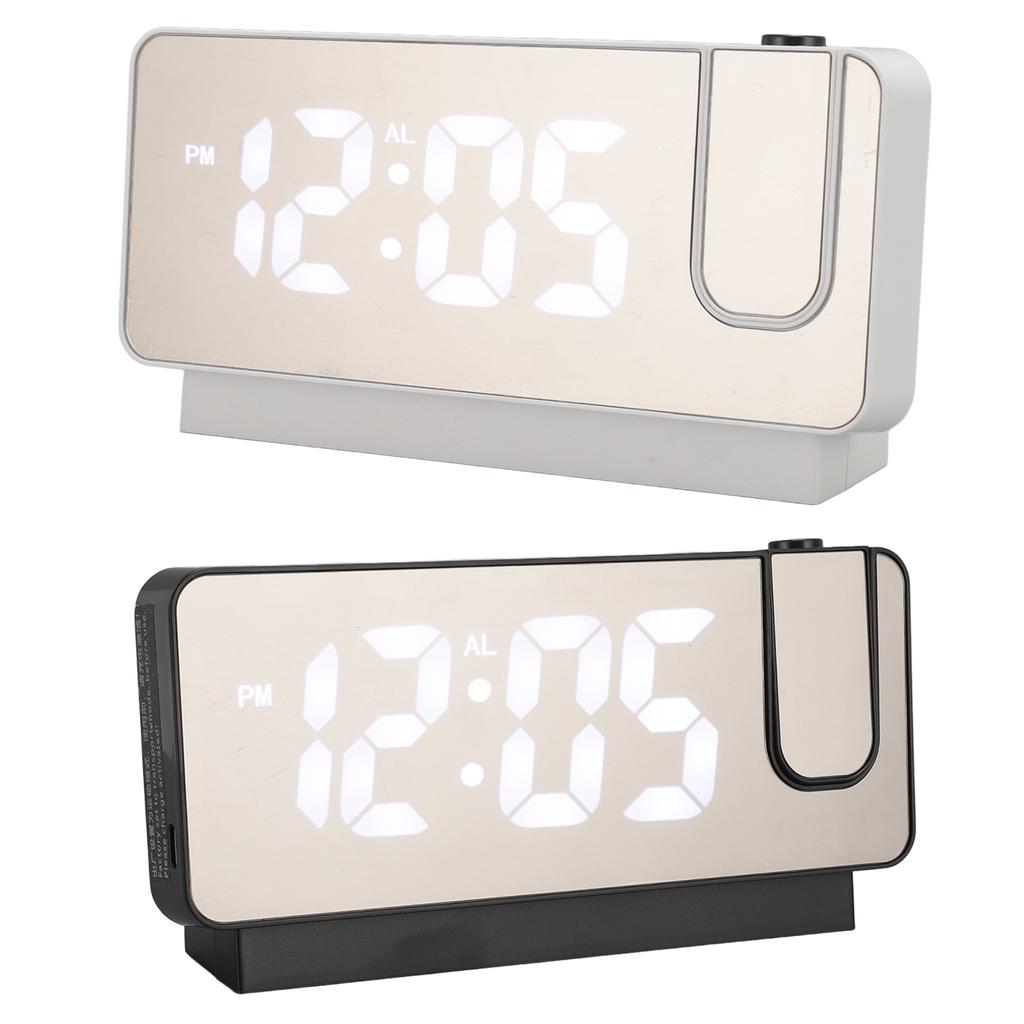 Проекционный будильник с USB-зарядкой, белый свет, функция повтора сигнала, регулируемая яркость, светодиодное зеркало