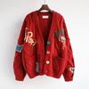 Женский свитер осень-зима с вышивкой, V-образным вырезом, длинным рукавом, буквенным узором, карманом, свободная трикотажная куртка, теплый кардиган