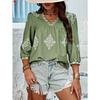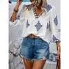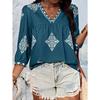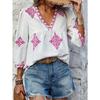 Женская рубашка, летняя модная, с принтом, с семью рукавами и V-образным вырезом