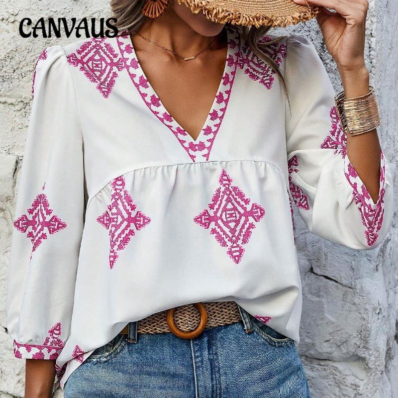 Женская рубашка, летняя модная, с принтом, с семью рукавами и V-образным вырезом — купить товар онлайн с бесплатной доставкой по всему миру!
