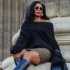 Свитер с открытыми плечами для женщин, осень-зима, свободный, с длинным рукавом, вязаный, женский, уличный, повседневный, большой, топ, пэчворк, свитера для поездок на работу, женские — купить товар онлайн с бесплатной доставкой по всему миру!