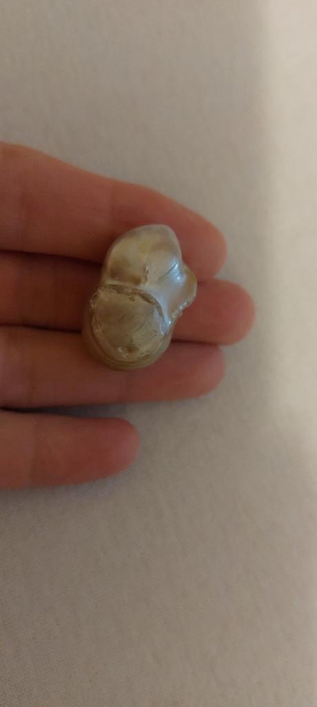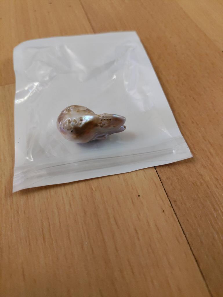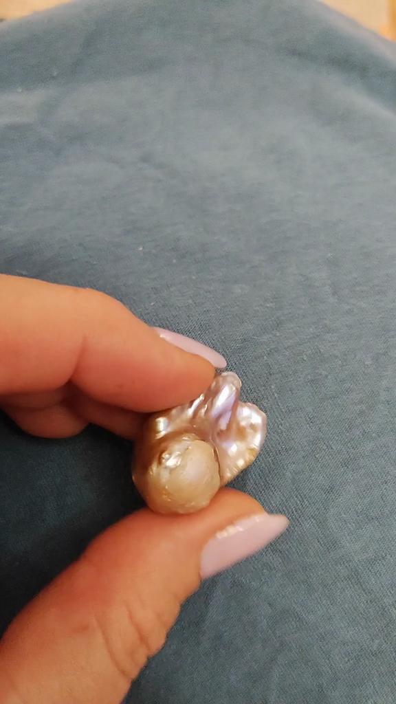Это натуральный жемчуг барокко, но низкого качества.Слой перламутра в точках - царапинах, а на другой стороне отколот кусок перламутра.Разочарование!!! На фото рекламном все выглядит красиво, без сколов.