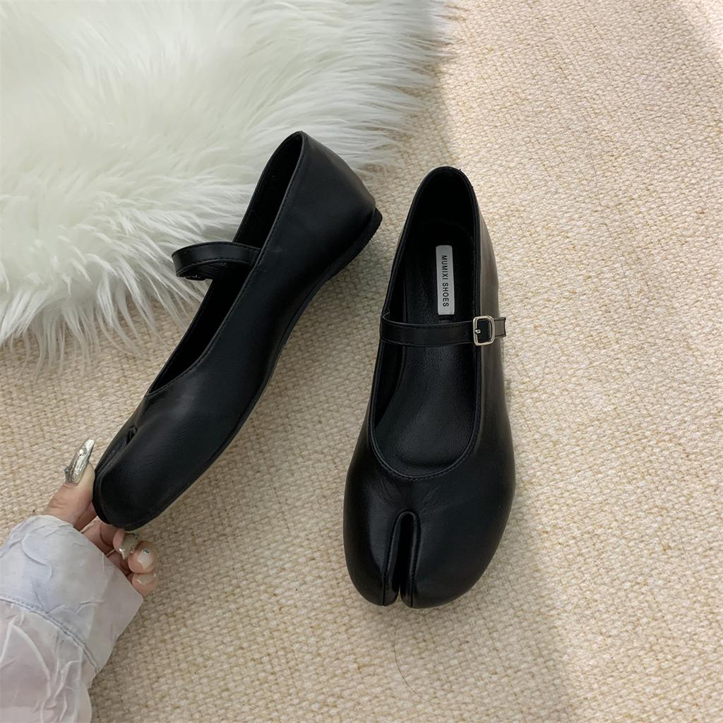 Повседневные женские туфли с разрезным носком и свиным копытом, однотонные, низкие, с неглубокой пряжкой, женские, модные, на плоской подошве