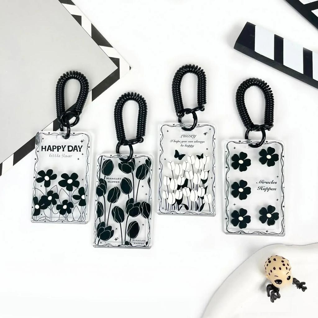 Чехол для карт с черным цветком, прозрачный держатель для студенческой карты, чехол для карты контроля доступа, чехол для карты на пружине, держатель для удостоверения личности
