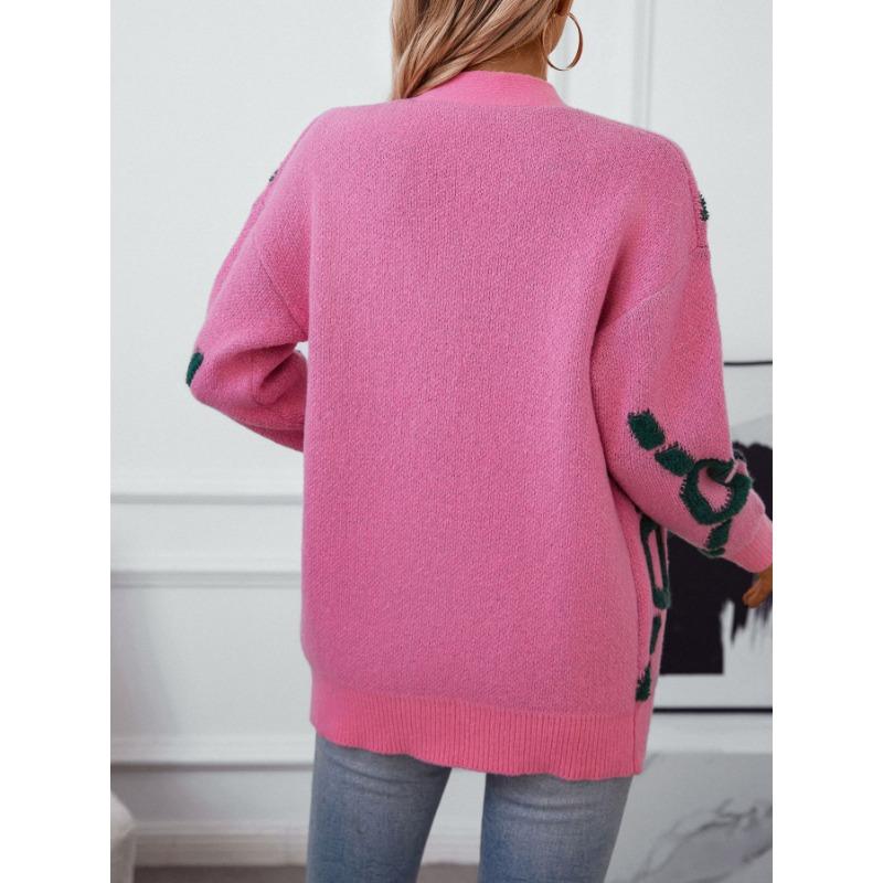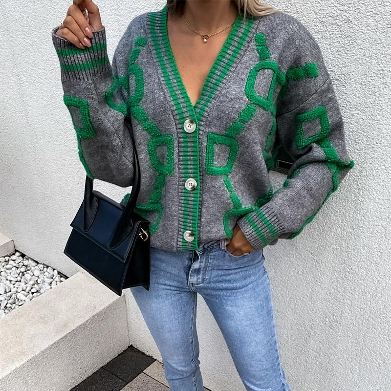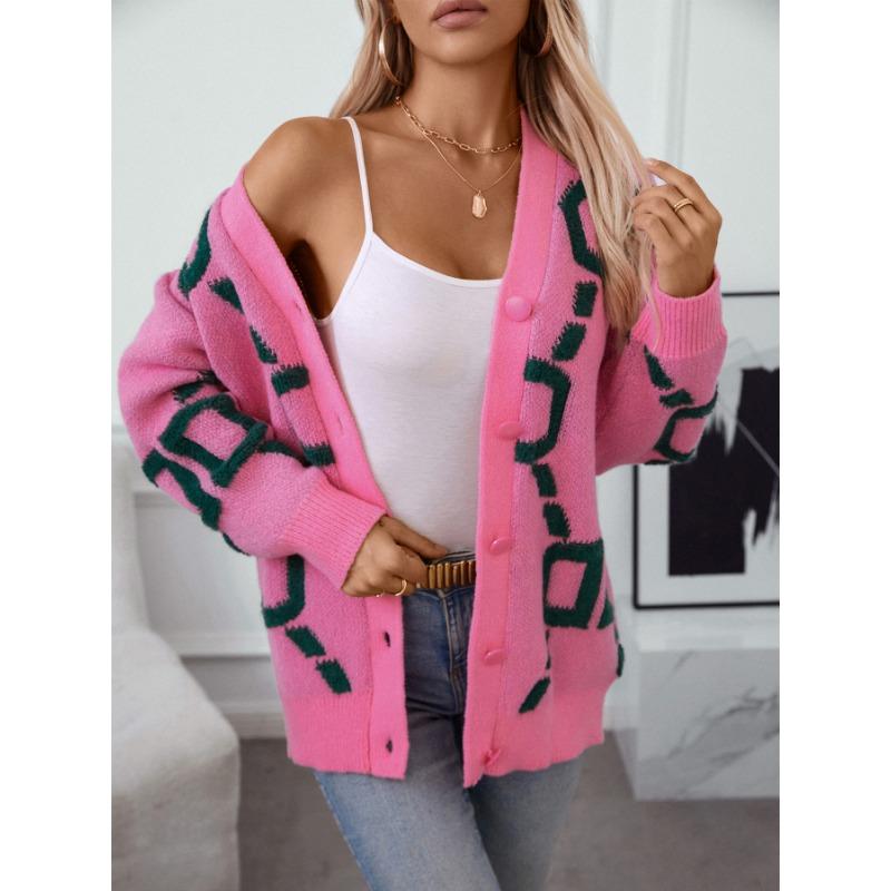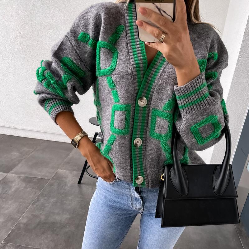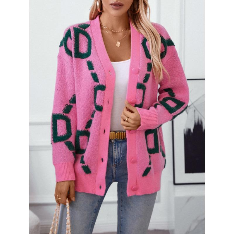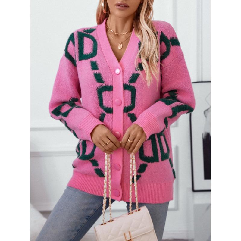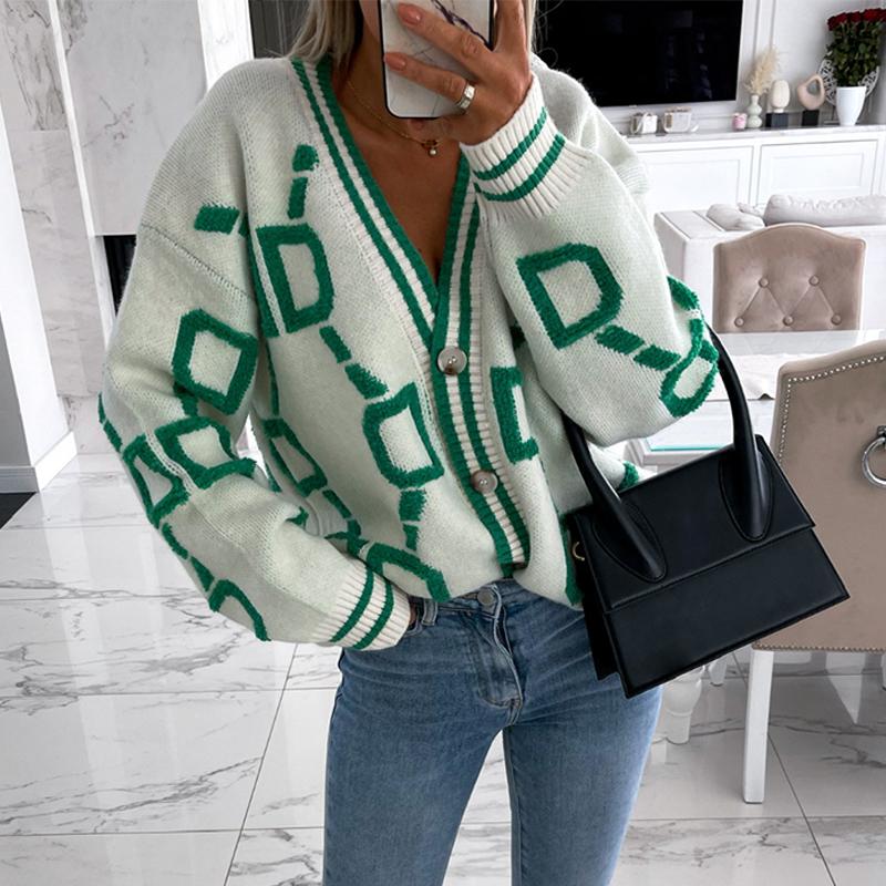 Свитер-пальто Женский однобортный топ с V-образным вырезом Свободный вязаный кардиган Свободный повседневный однобортный свитер с длинными рукавами