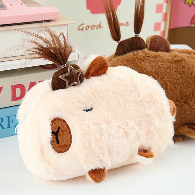 Новый милый плюшевый пенал Capybara, косметичка, сумка для ручек в виде морской свинки, большая вместительная сумка для карандашей, школьные принадлежности, канцелярская коробка