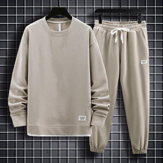 дизайн: Повседневный комплект свитшотов состоит из классического топа с круглым вырезом и брюк с эластичным поясом, что обеспечивает удобную и свободную посадку, подходящую для разных типов телосложения.. Вафельная ткань добавляет текстуру и тепло, идеально подходит для осеннего сезона.