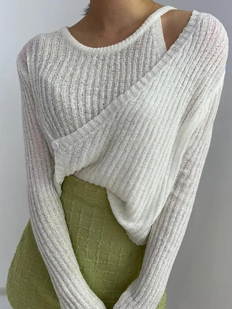 Женский свитер ранней осени, тонкий трикотажный модный свитер в стиле вестерн с пряжкой, ажурным дизайном, дышащая рубашка с длинным рукавом, защита от солнца... — купить товар онлайн с бесплатной доставкой до всему миру!