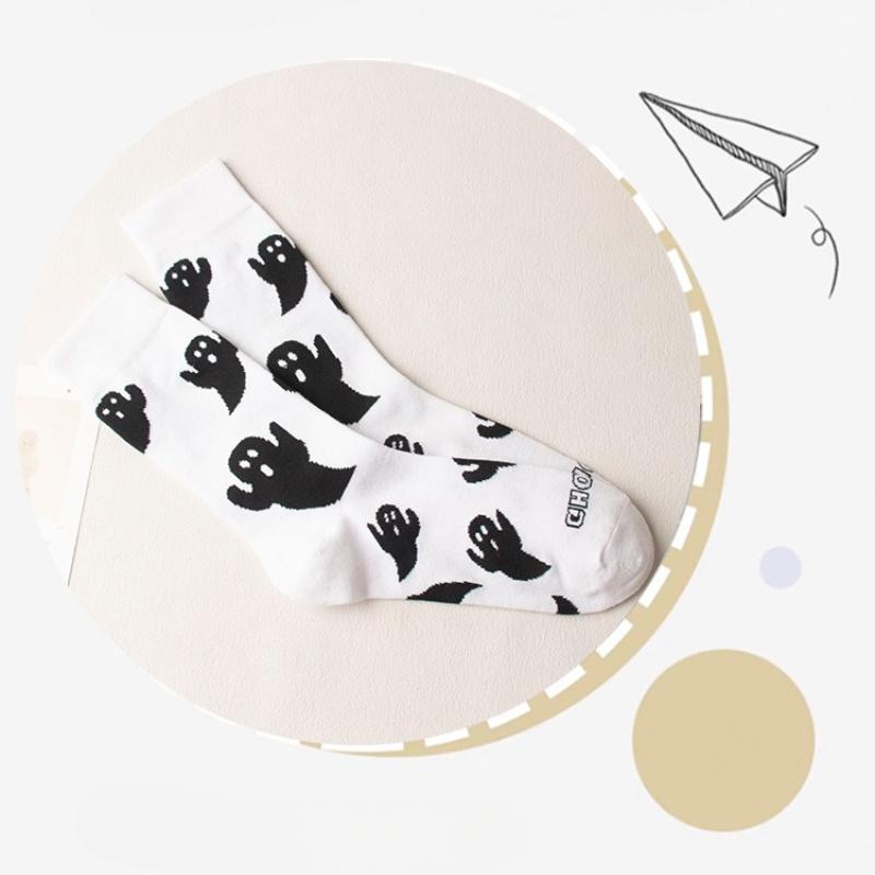 2 пары осенних модных женских носков средней длины с дышащими свойствами, носки для вечеринки в честь Хэллоуина