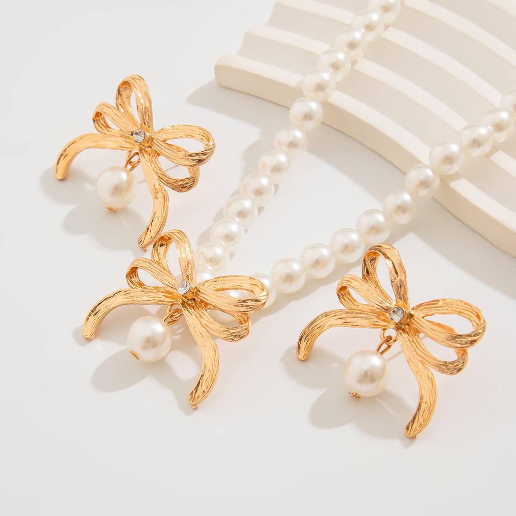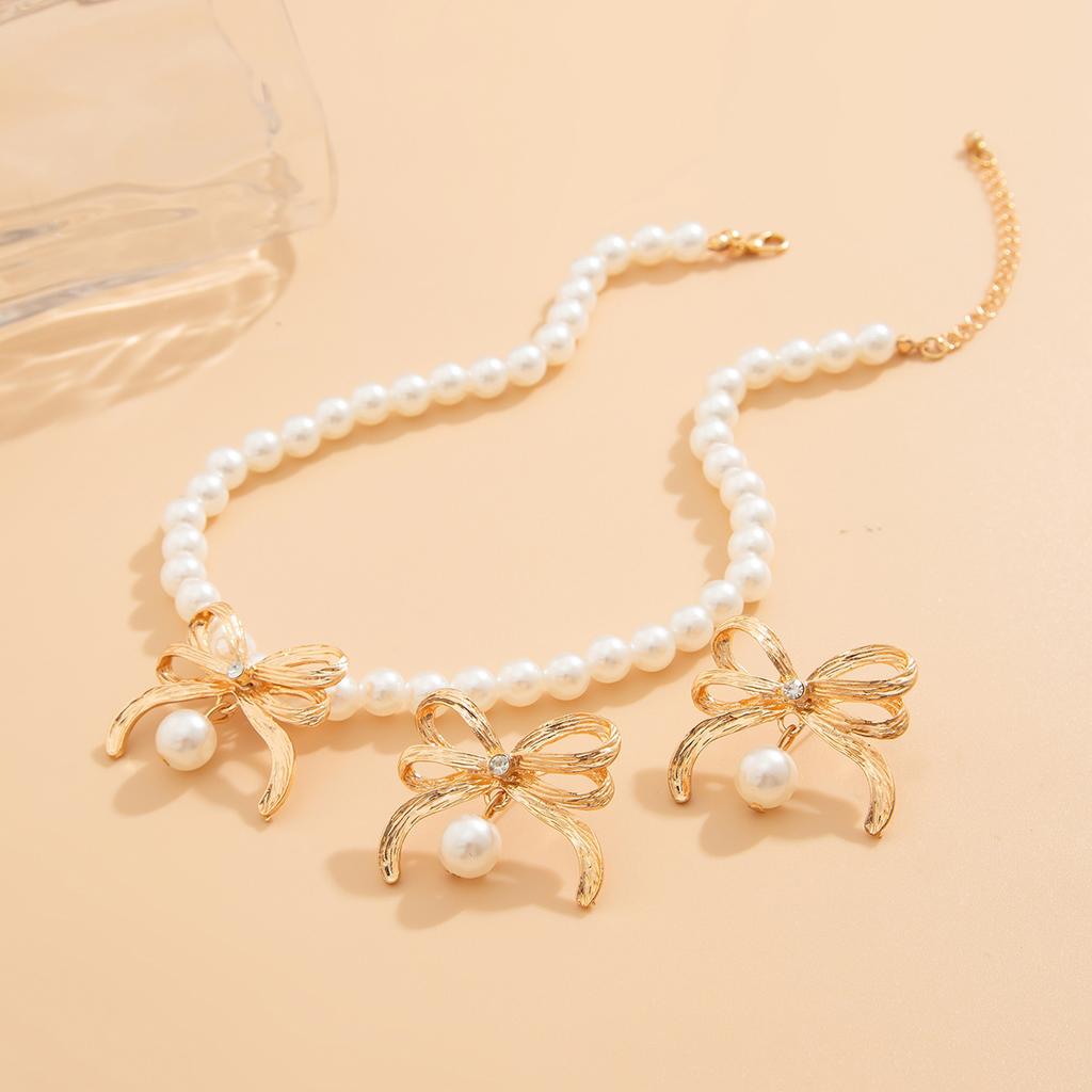 Имитация жемчуга бант чокер для женщин бант ожерелье серьги свадебные украшения аксессуары