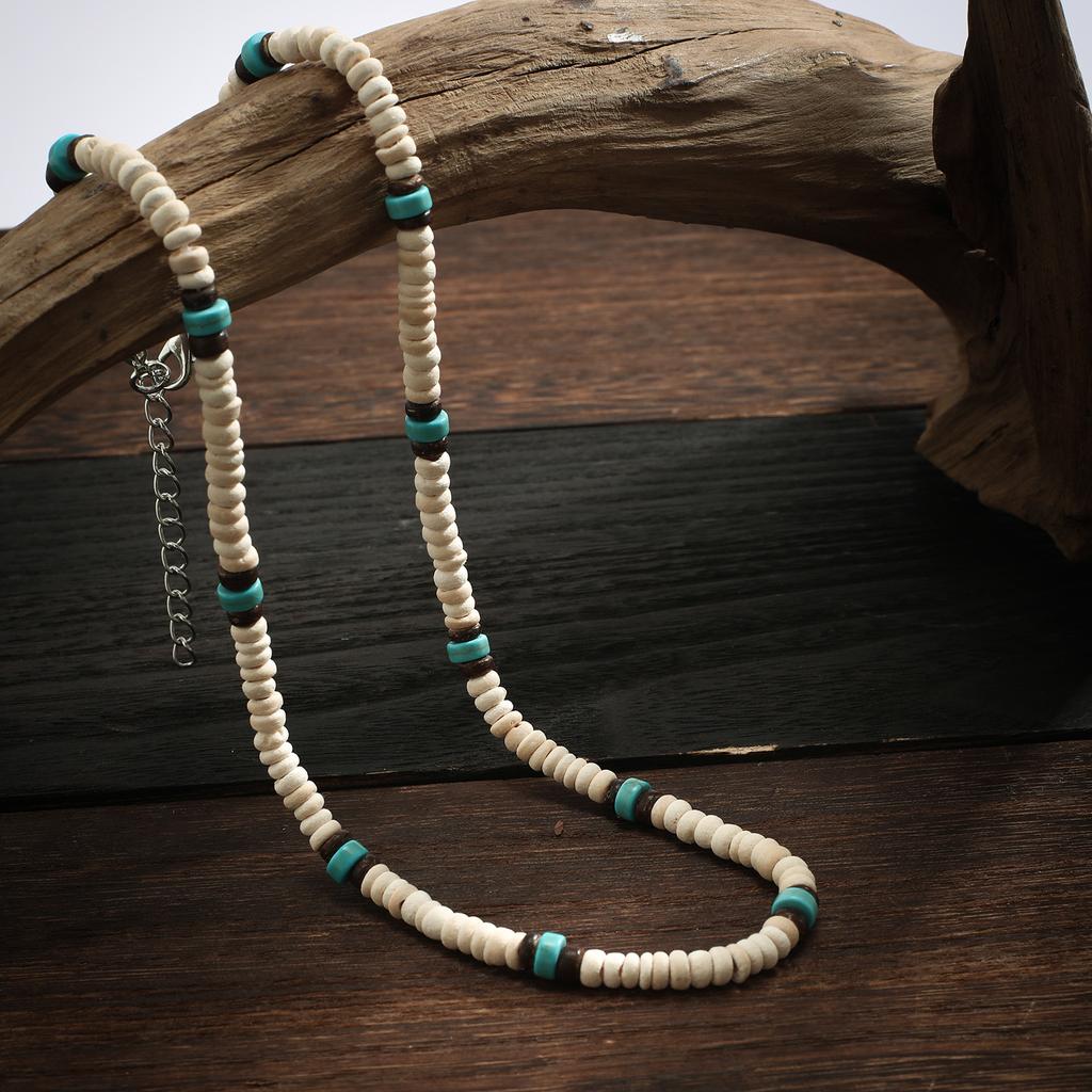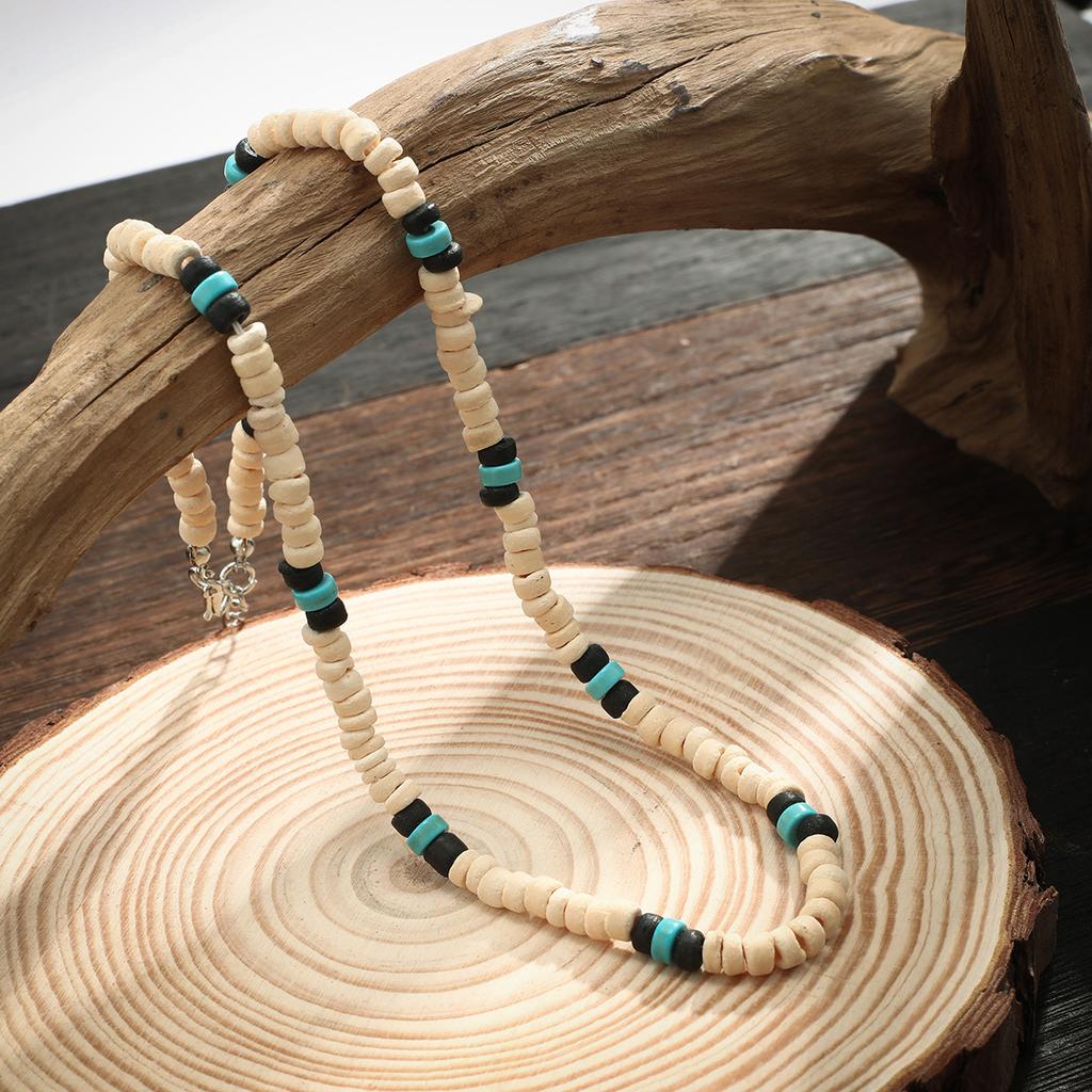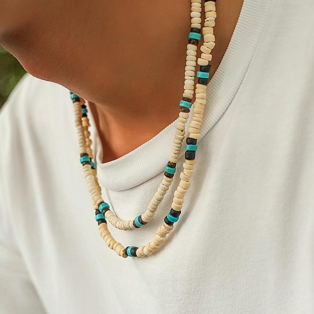 Мужское ожерелье из деревянных бусин серферов из кокосовой скорлупы, мужская нишевая мода в стиле ретро с вышивкой бисером на ключице.
