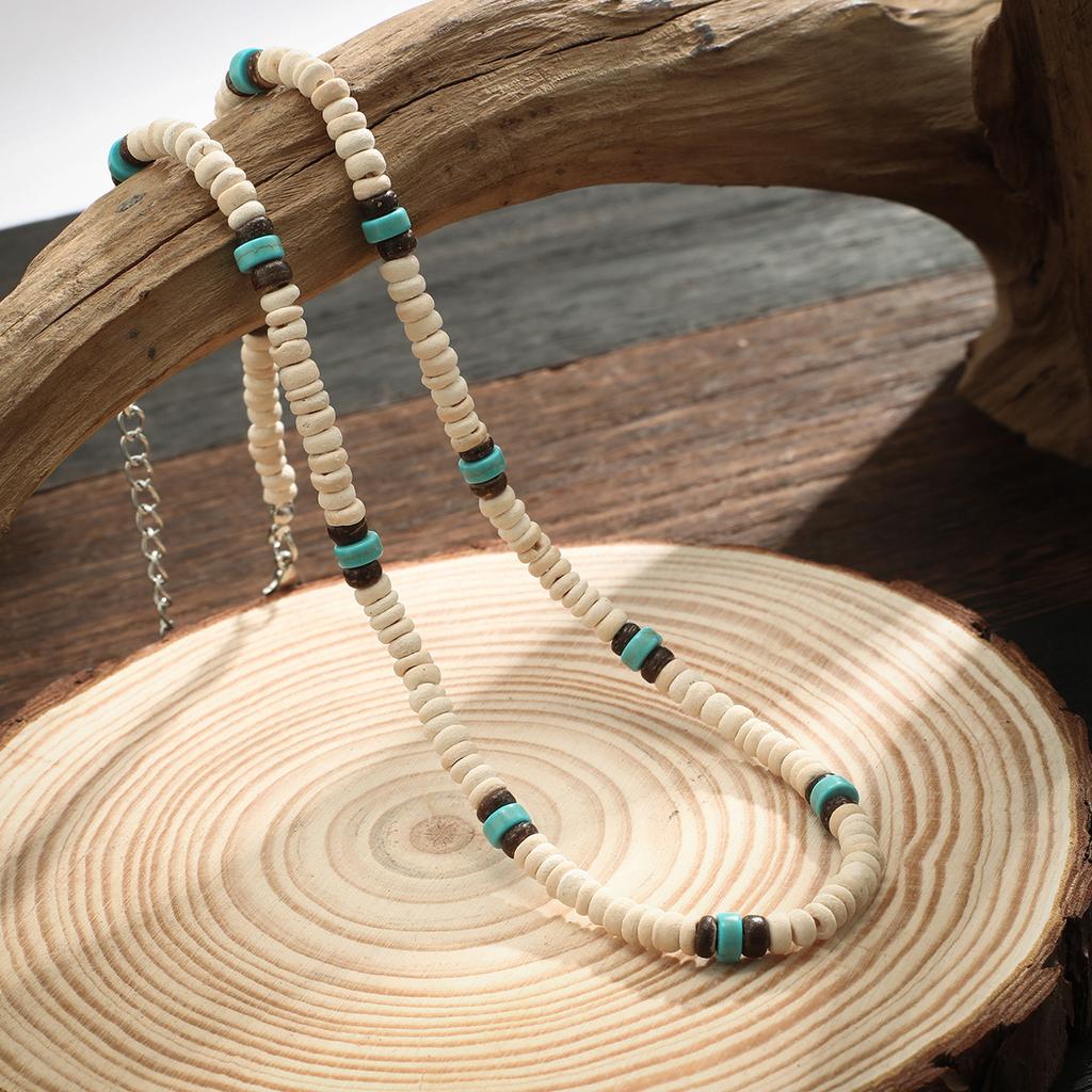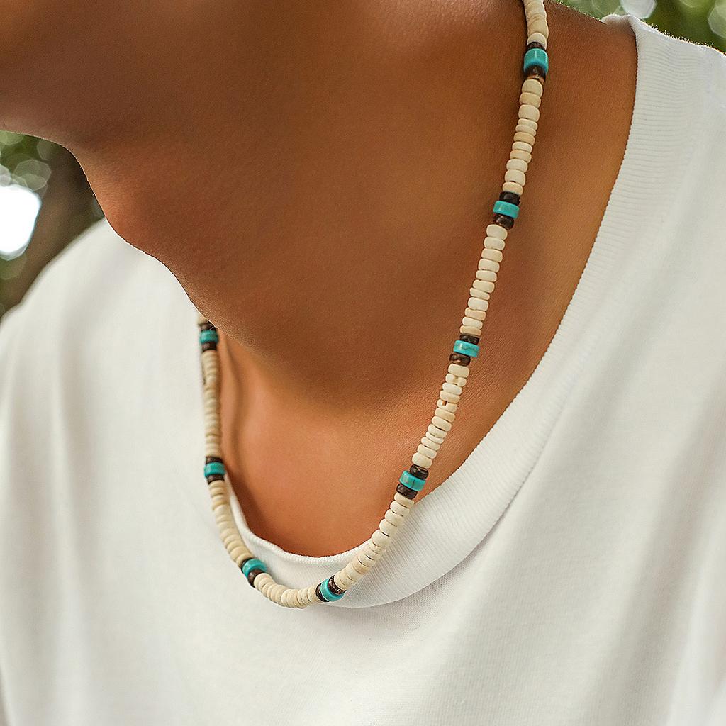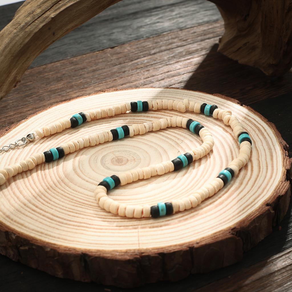 Мужское ожерелье из деревянных бусин серферов из кокосовой скорлупы, мужская нишевая мода в стиле ретро с вышивкой бисером на ключице.