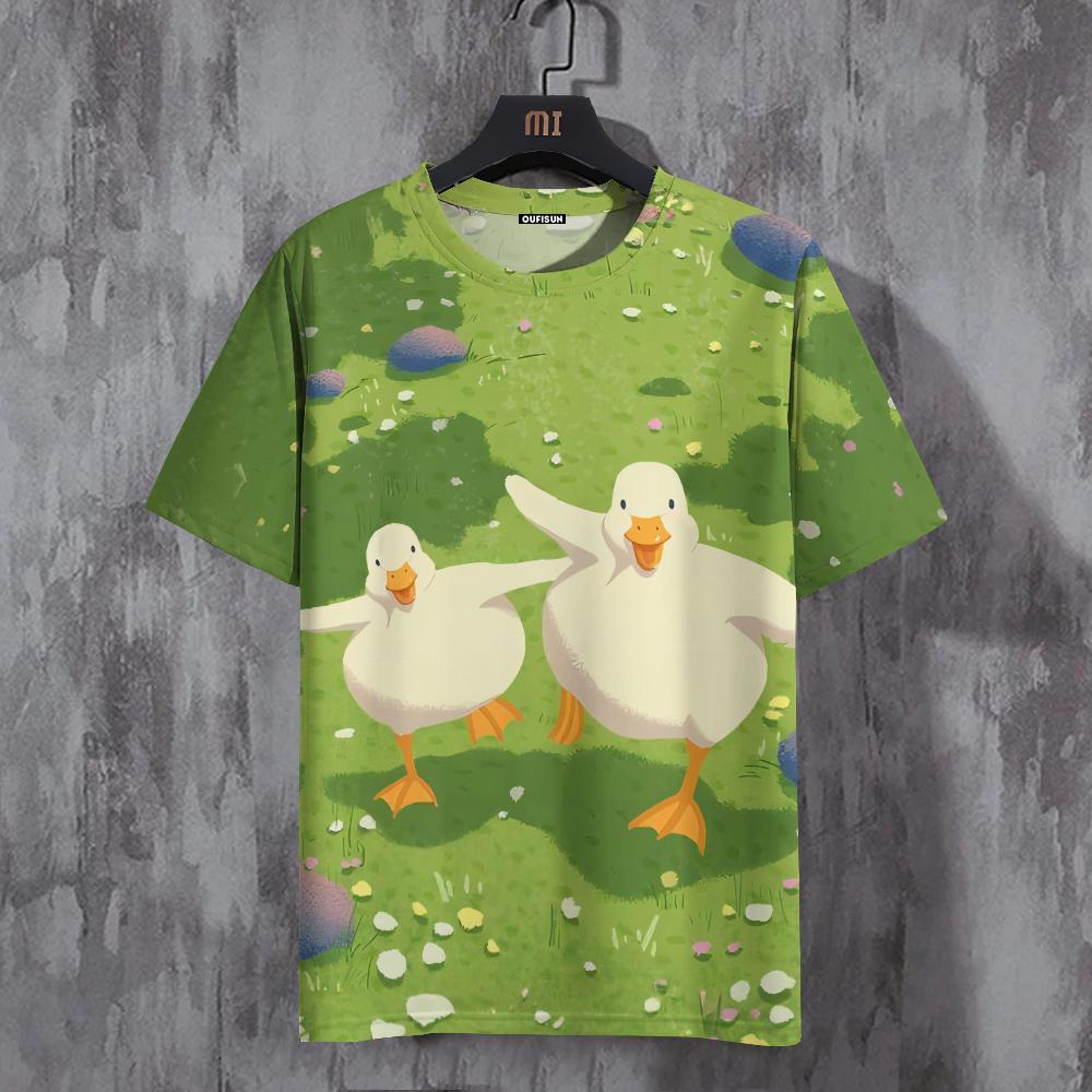 Футболка для мужчин с забавным принтом утки, повседневная спортивная футболка с круглым вырезом, спортивная футболка, свитер с короткими рукавами, топы, мужская свободная одежда